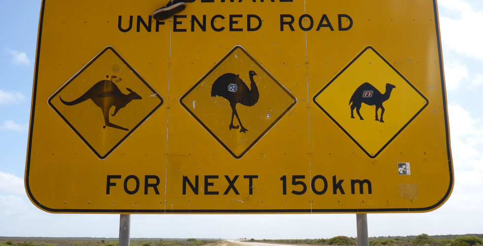 Aber eine Achterbahn wird der Eyre Highway danach auch nicht. Es geht gen Osten dahin. Euphorie und Zweifel wechseln sich ausgeglichen. Die Grundstimmung ist aber gut. Die Vegetation ändert sich stetig und die Tierwelt ist schon teils sonderbar. Die Bäume werden kleiner und kleiner und ich bewege mich nur noch durch Bonsai Wälder und höre dazu Gullivers Reisen als Audiobook. Nicht nur dies, ich höre Audiobooks über Geschichte Deutschland, Europa – Politik, Kunst, Musik und Philosophie bis ich es fast auswendig kann… aber auch Märchen wie 1001 Nach und Werke von Mark Twain, Oscar Wilde oder Erich Kästner… Das machen alle so in der Nullarbor. Ein Audiobook hören, das Steuer gen Osten und einen Stein auf das Gaspedal ;-) Sehr viel Zeit zum Hören und Nachdenken. Wann hat man schon mal die Möglichkeit, ein Album von Pink Floyd 5 mal hintereinander zu hören und die Kulisse bleibt trotz stetiger Bewegung die selbe Gleiche. Da kommen immer wieder neue Nuancen heraus…