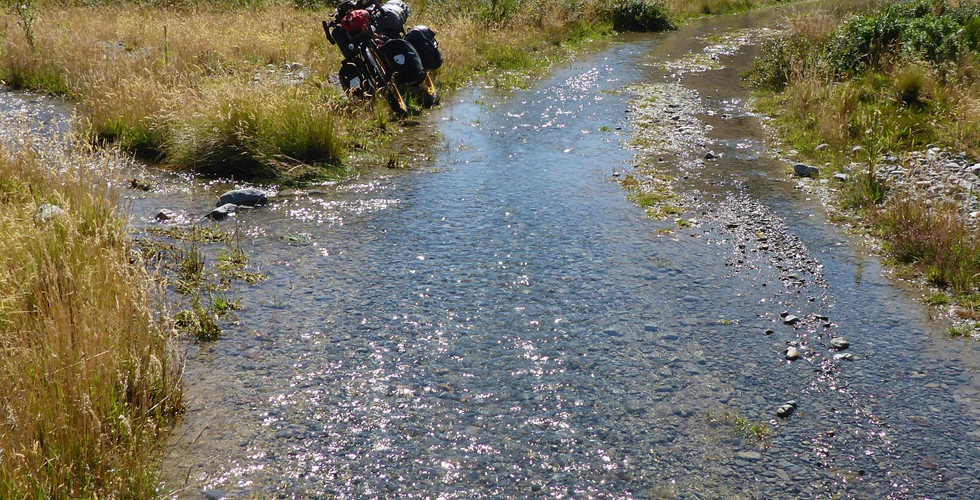 Von Cromwell ging es am HWY 8 durch Mondlandschaft und an Stauseen entlang bis Clyde, wo der Otago Central Rail Trail startet. Der Rail Trail ist Brett Eben aber Landschaftlich sehr beschaulich. Hat so was von Wild Western Film Landschaft. Kurz vor Galloway (ein Ladies Waiting Room :-) setzt Regen ein und ich warte ausnahmsweise als Herr in dieser Hütte. Kurz nach mir sucht ein weiterer Herr trockenen Unterschlupf. Er ist auf seiner abendlichen Runde per MTB und in Begleitung zweier Hunde. Er ist Farmer und besitzt 15.000 Schafe, die ca. 55 Tonnen Wolle jährlich für Icebreaker und Co. produzieren. Er beschwert sich, das seit dem Produktionswechsel nach Chine die Qualität leidet und er nun auch SmartWool verkauft. Angeregt unterhalten wir uns über Funktionsbekleidung, Radreisen und das Wetter. Wie der Regen nachlässt, habe ich schon mit Essen kochen begonnen und der Schäfer wünscht mir angenehme Nachtruhe im „Ladies Waiting Room“. Am nächsten Morgen werde ich freundlich von den ersten Radreisenden geweckt und meinte: Ich sei der Hausherr und die Ladies hätten schon den Zug im Morgengrauen genommen ;-) Es hat sehr viele ältere Radler, die mit Gepäcktransport kleine Stücken täglich vom Trail bereisen, um nicht zu sagen, Unmengen von Rentnern :-) Am Nachmittag entschließe ich mich für die Flucht nach vorn und biege in Richtung Omarama Saddle ab. Am Homestead Camp hat's eine geräumige Hütte für mich allein und am nächsten Morgen „steche ich in See“!? Es warten 47 Furten am Weg über den Pass auf mich. Weniger wie 10 davon sind fahrbar, einige sind Knie tief… Ich find's supi :-) Kurz vor der Top Hut, setzt Regen ein und ich teile mir die Hütte mit Holly. Sie ist in entgegengesetzter Richtung unterwegs und wartet das Unwetter schon seit der vorhergehende Nacht in der Hütte ab. Der Ofen ist noch vom Tee warm und ich koche für uns Abendessen. Zwischen durch, kommen noch Enduro Fahrer vorbei und meinem, es sei ein Event die Tage und morgen kommen wohl 150 Enduros über den Tag verteilt hier lang – was soll das??? Mal schauen. Holly ist übrigens mit Leichtgepäck unterwegs, seit 6 Wochen und 3000 km – Chapeau! Die Unterhaltung ist eher zurückhaltend. Wir sitzen das Wetter aus und bedauern nicht weiter zu kommen. Es wird gelesen und ab und zu geschaut, wie es draußen Hagelt, Blitzt und Donnert. Das Unwetter geht noch die ganze Nacht hindurch. Am nächsten Morgen reist der Himmel auf und es hat plötzlich Sonnenschein und schnell packen und los. Die letzten 3 km bis zum Pass sind schiebe Stück oder besser gesagt hebe Stück. Voll die Wand und ganz groben, losen Schotter. Oben am Pass setzt zum tobendem Wind auch wieder Regen ein aber es geht in eine traumhafte 10 km Abfahrt. Es ist schier unglaublich wo ich mit Annie überall fahren kann :-) Ich liebe dieses Rad wirklich! Und übrigens kam keine einzige Enduro bei dem Sauwetter daher ;-)