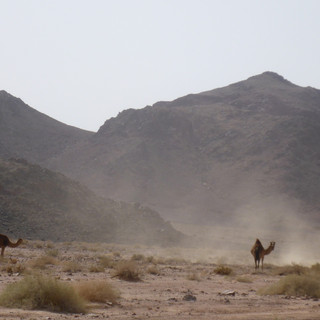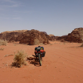 In Wadi Rum fasse ich Wasser fuer 3 Tage und stürze mich in den rosa Sandkasten ;-) Ich finde es sooo fantastisch bezaubernd da draußen! Eigentlich ist es gut machbar in einem Tag von Wadi Rum durch die Wüste nach Aqaba am Roten Meer zu fahren. Aber nicht fuer mich! Ich fahre im Zig Zag, kreuz und quer, Dünen rauf und Dünen runter, fotografiere Pflanzen hier und Tiere dort... Und weil diese schöne Wüste doch so touristisch erschlossen ist, gibt es sogar Ecken mit Netzabdeckung und so teile ich mit meinen Eltern einen Sonnenuntergang per Skype, einmalig :-) Die Beduinen sind sehr freundlich, hilfsbereit und interessiert an Radlern. Oft stoppen sie mit ihren Touristen Jeeps, erkundigen sich, ob alles okay ist und bieten mir Wasser an. "wild" campen ist fast ueberall